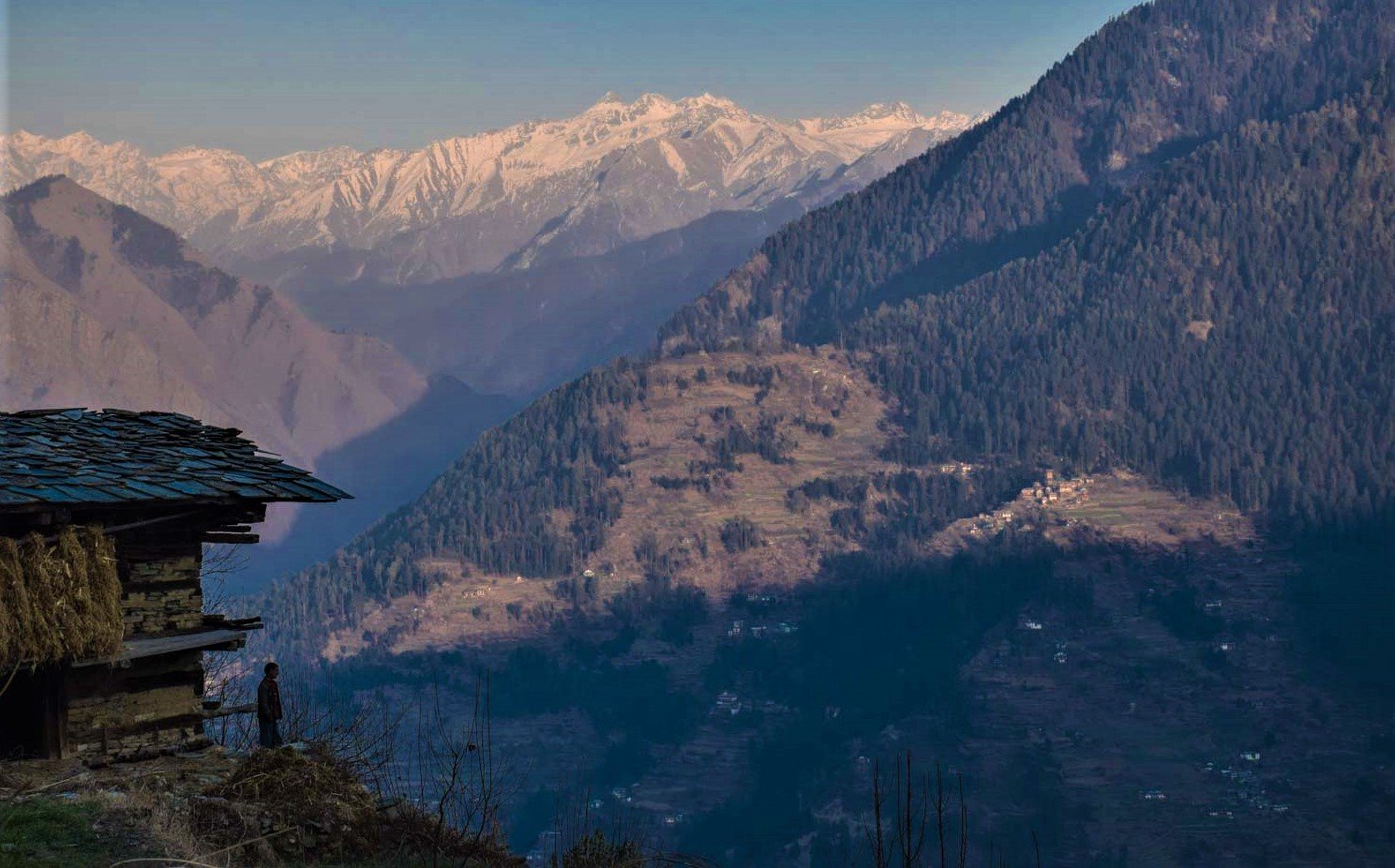 Traditional wooden Himachali houses, narrow lanes, and peaceful riverside trails.