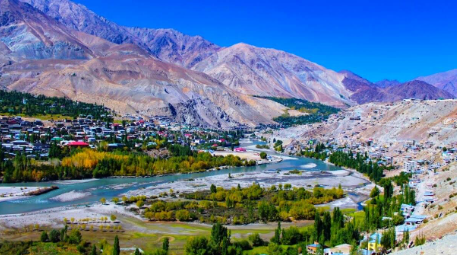 On the way to Pangong Lake, you will pass through the picturesque Shyok Village.
