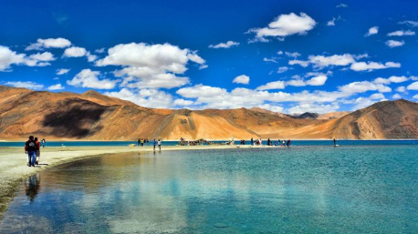 Take some time to pause and appreciate the beauty of this saltwater lake, which stretches over 130 kilometers across India and China.