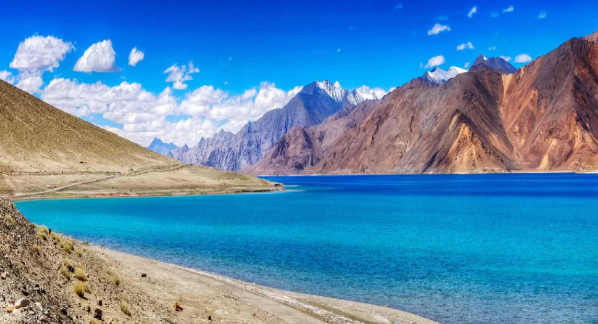 Pangong Tso is famous for its ever-changing colors, shifting from deep blue to turquoise.