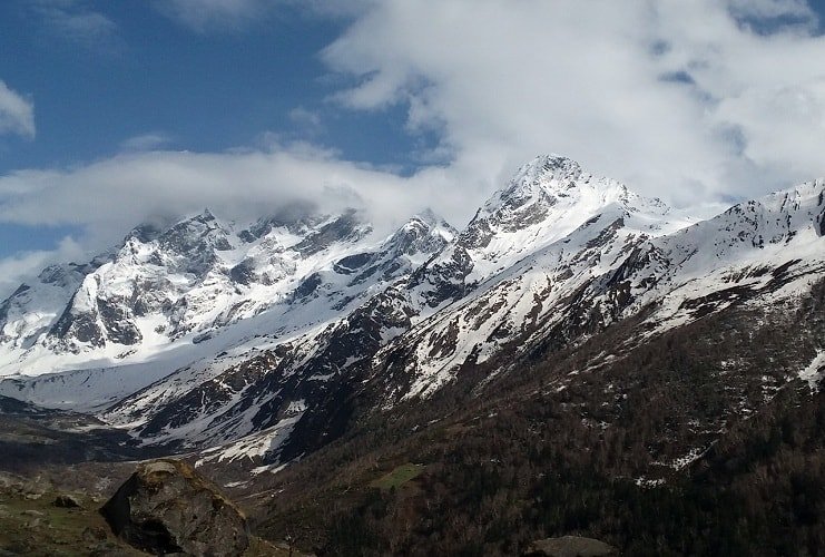 Devsu Thatch Meadow: A scenic meadow with stunning views of the Swargarohini ranges and Kalanag (Black Peak), surrounded by lush green forests.