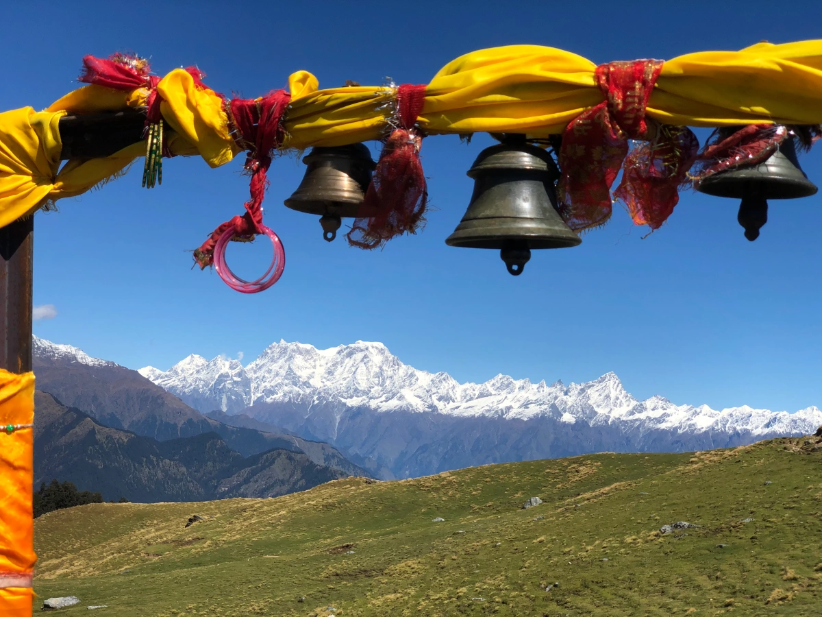 The trek to Budha Madhyameshwar is short but rewarding, as it offers an incredible view of the Chaukhamba Peaks.