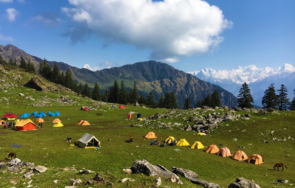 Guling: A peaceful campsite surrounded by Garhwal mountain views, providing a perfect spot for acclimatization and relaxation.