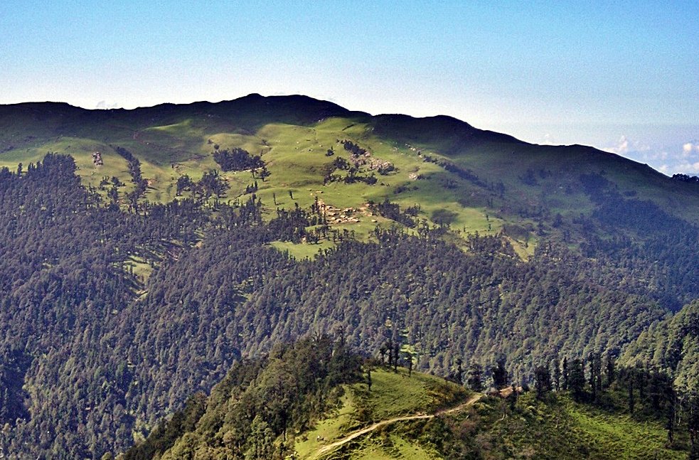 Raj Kharak Campsite: A peaceful camping spot surrounded by forests and rolling hills, perfect for relaxation after a challenging trek.