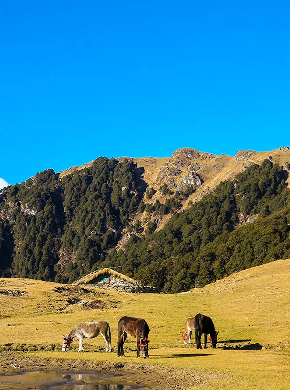 Ghuttu Village: A serene base camp at 5100 feet, offering a glimpse into the tranquil lifestyle of the Himalayan foothills.