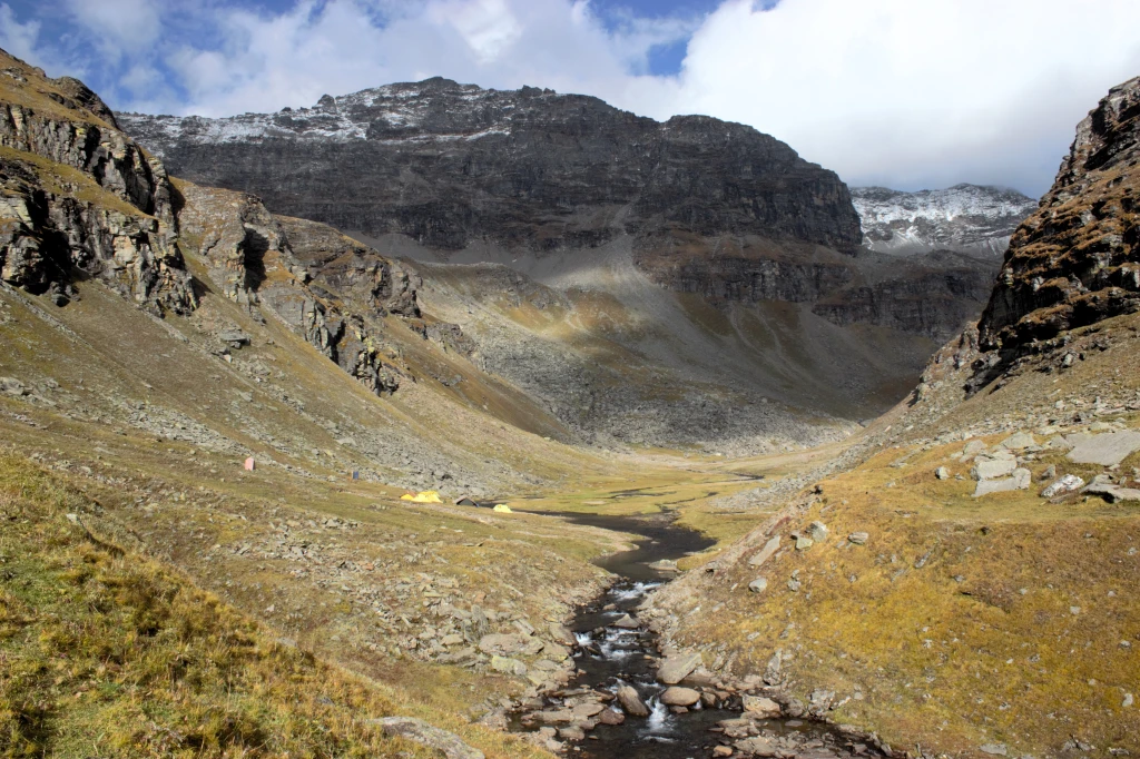 Dhanderas Thach: A scenic campsite surrounded by snow-capped mountains, offering breathtaking views of the upper waterfall.