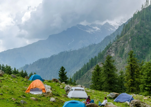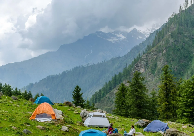 Nagaru: A high-altitude campsite at 12,500 feet, offering panoramic views of the Chanderkhani Ranges and Parvati Valley.